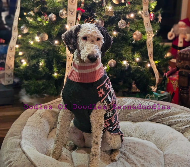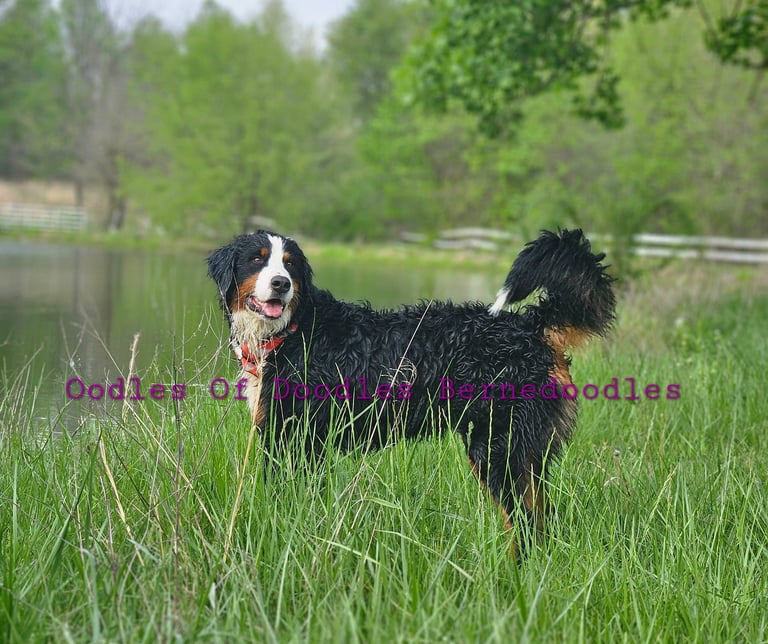 Ruby is a puppy we retrained from our 2024 bernedoodle litter. We choose her specifically because at a young age she showed the intelligence, temperment, and hair texture that we strive for. Not to mention her chocolate with silver under coat. At just 3 days old we start ENS, ESI and early sound introduction that helps us select the prefect puppy to retain as well as fit them with an ideal family.